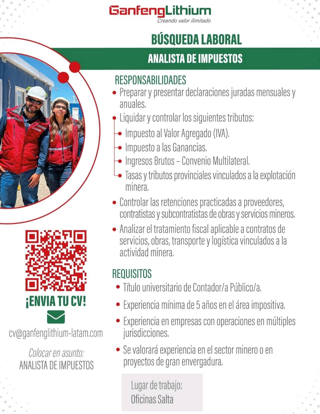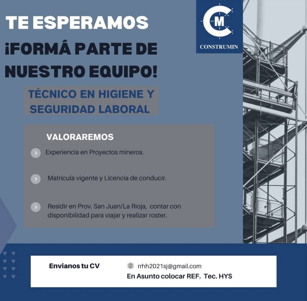 Nuestra página brinda este espacio de manera gratuita, para todas las empresas mineras y proveedores, que deseen publicar una búsqueda laboral relacionada al sector. No se publicarán valores de salarios. Este sitio no es responsable de la contratación de personal , ni participa en entrevistas, ni evaluaciones de ningún tipo , ni establece relación laboral alguna. Los interesados deberán contactarse con la Empresa solicitante de manera directa, a través de los datos que figuran en el Aviso laboral. Al hacer uso de esta sección, los interesados en los Avisos publicados, aceptan estas condiciones de manera explícita. El sitio se reserva el derecho de publicar o no un aviso, si considera que no se ajusta a los parámetros establecidos. Esta sección tiene como única finalidad brindar un servicio , con responsabilidad social , que beneficie a toda la familia minera.