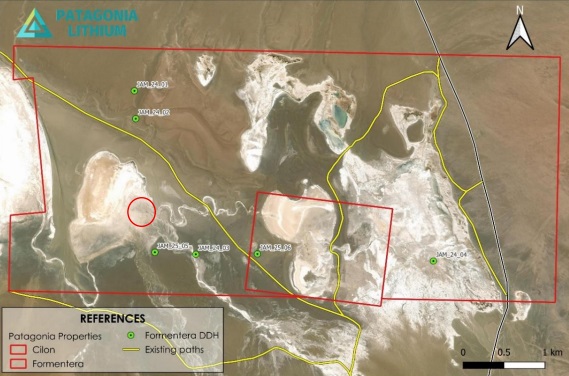 Patagonia Lithium Ltd. anunció que ha logrado tomar con éxito dos lotes de muestras y que ha contratado un sistema especializado de doble packer para realizar muestreos en profundidad, evitando la contaminación por salmueras de niveles superiores. Las coordenadas del pozo son (sistema POSGAR 94 / Faja 3): X = 3.399.655, Y = 7.412.332. Se tomaron cuatro testigos de 15 cm que fueron acondicionados y enviados al laboratorio de ensayos de Buenos Aires para su análisis de porosidad.